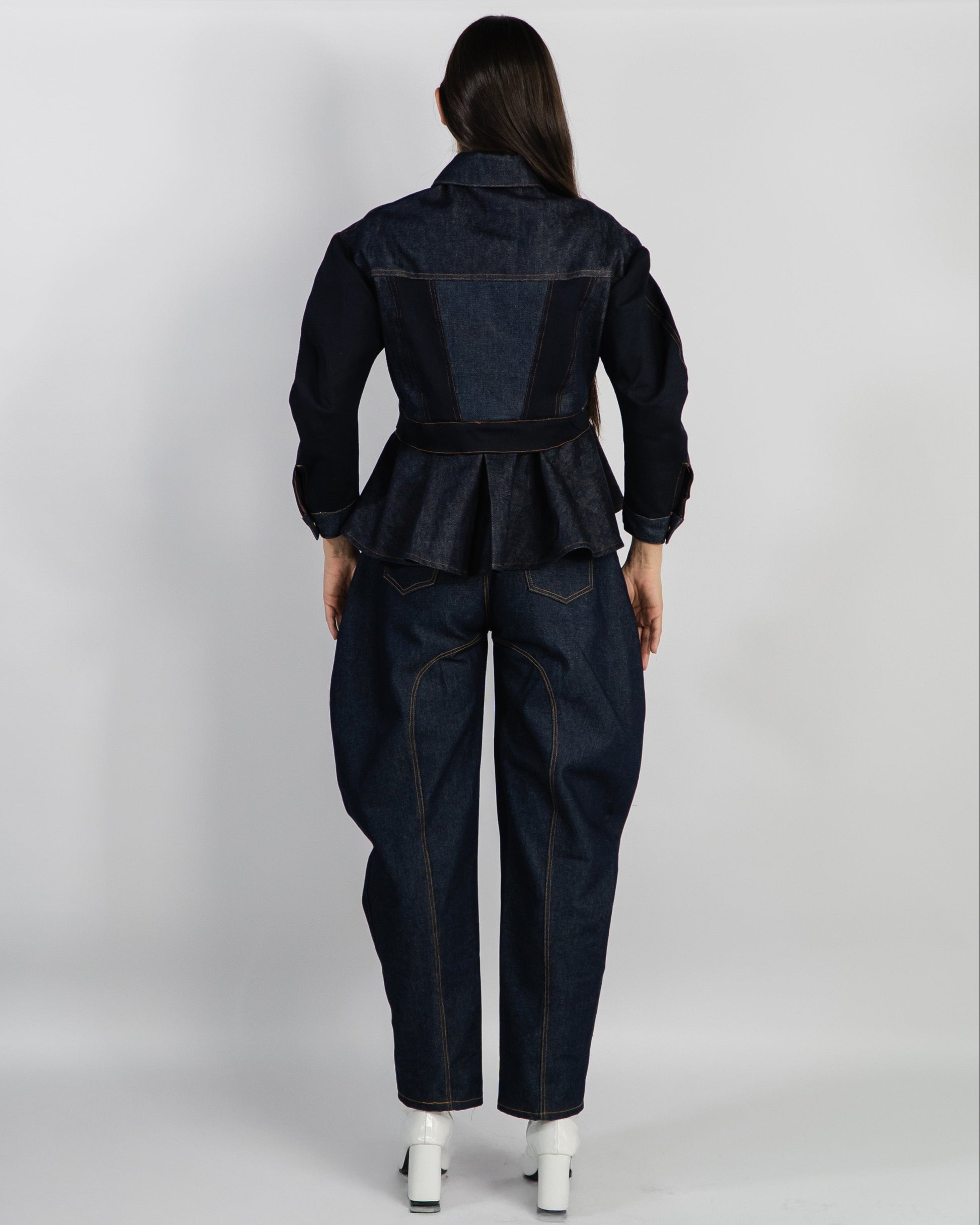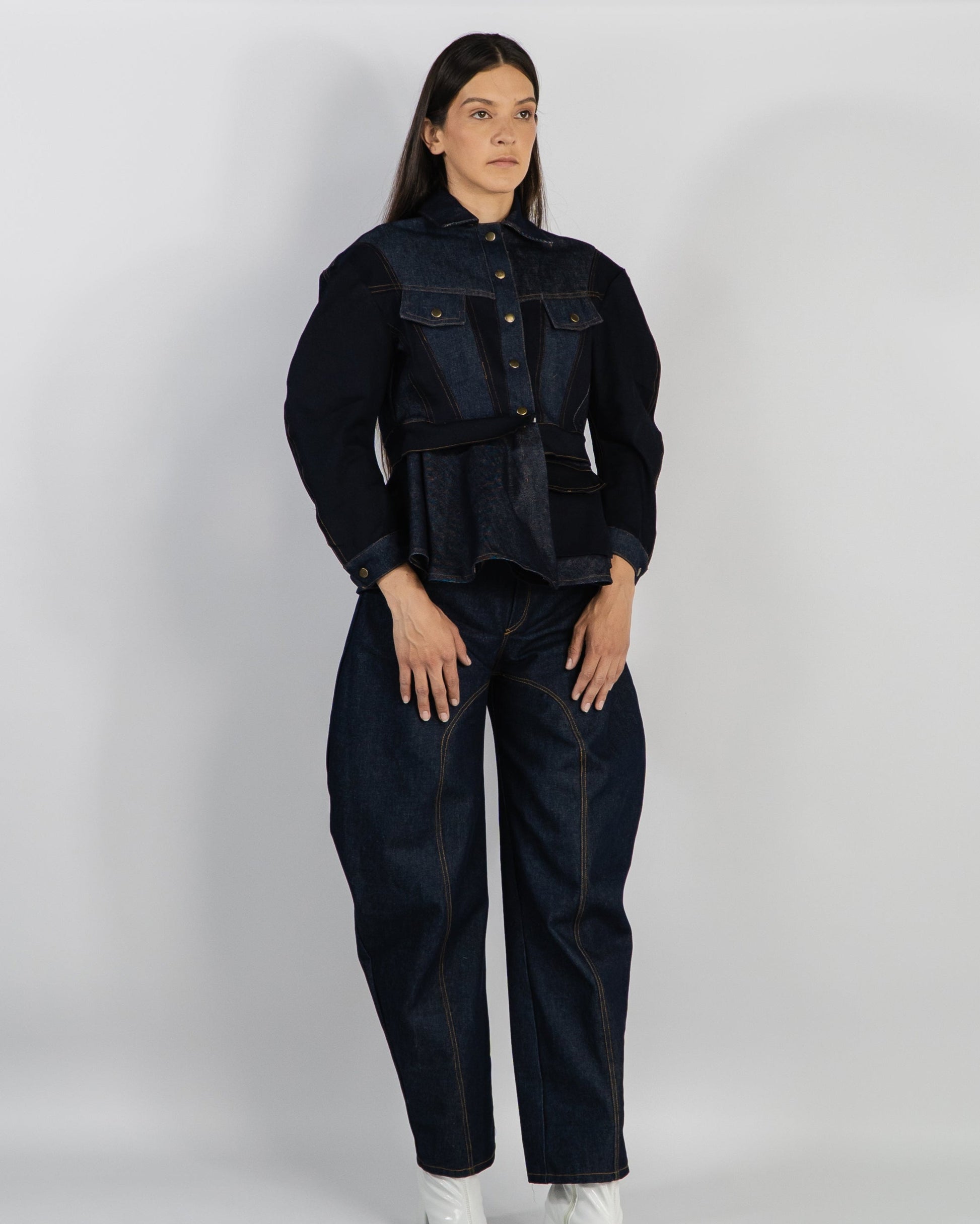 Loose-fitting , high-rise jeans with curved cuts, practical pockets, and modular embroidery.