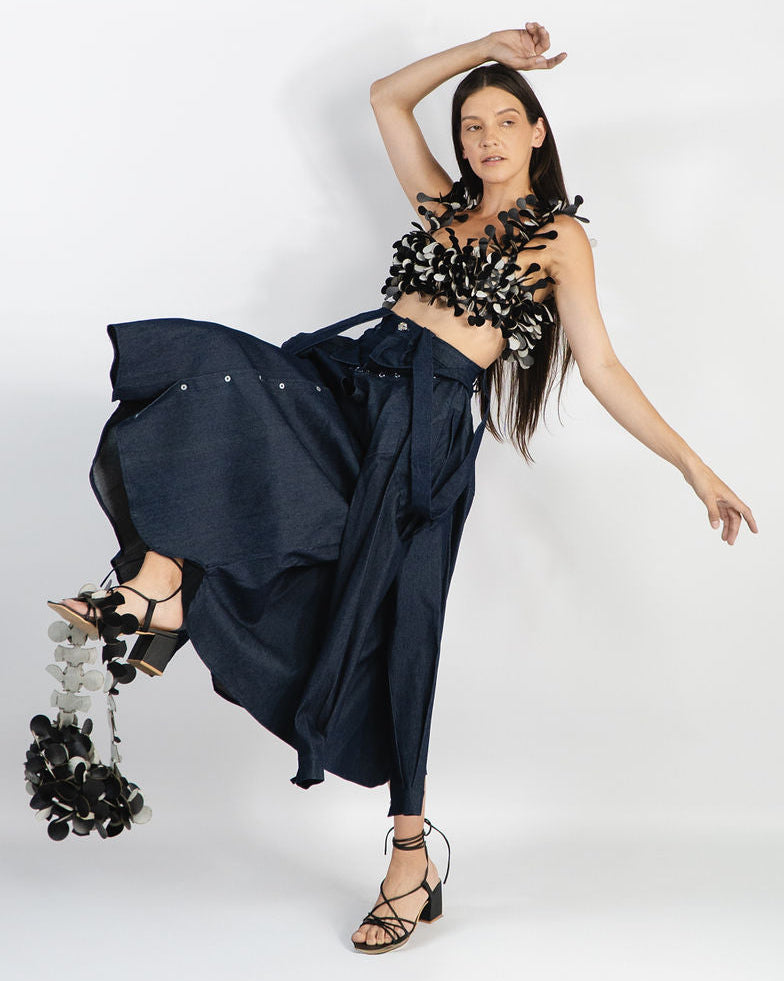 Cada top es una pieza única, lujosamente sustentable y vanguardista. Enorgullécete de saber que esta prenda ha sido elaborada por mujeres de forma artesanal en un ambiente sostenible.